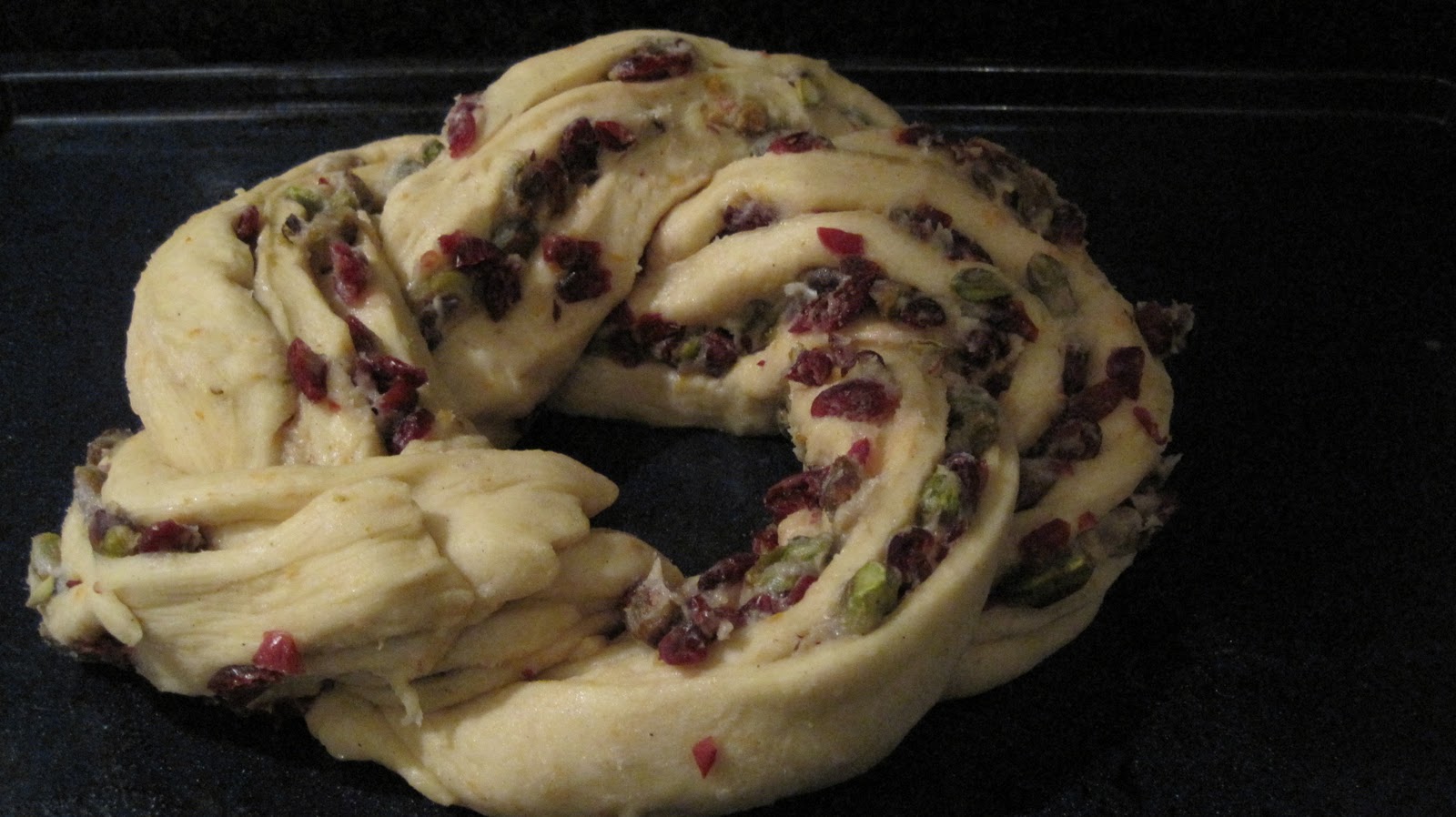 Holiday Bread Wreath with Cranberry-Pistachio Filling
