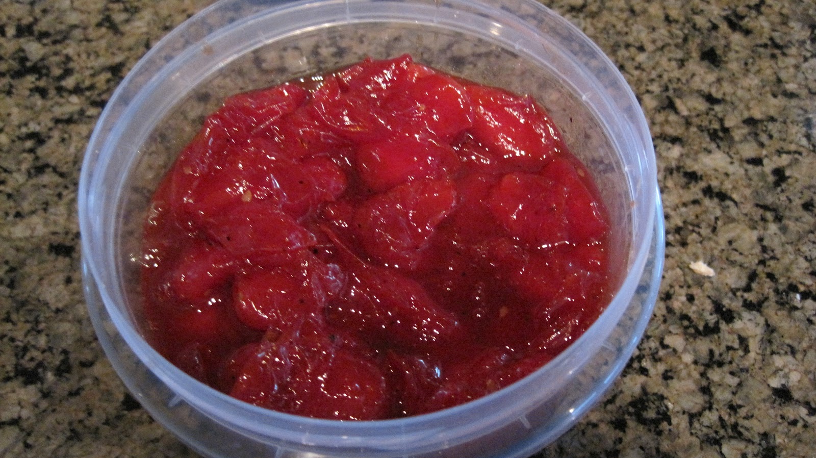 My first thought was to make baked olives, a wonderful dish that those who love olives would adore. However, vacationing here in the mountains I was unable to find any that looked worthy of using, so instead I created a Tomato Jam that makes a delightfully light, refreshing savory Mediterranean appetizer.