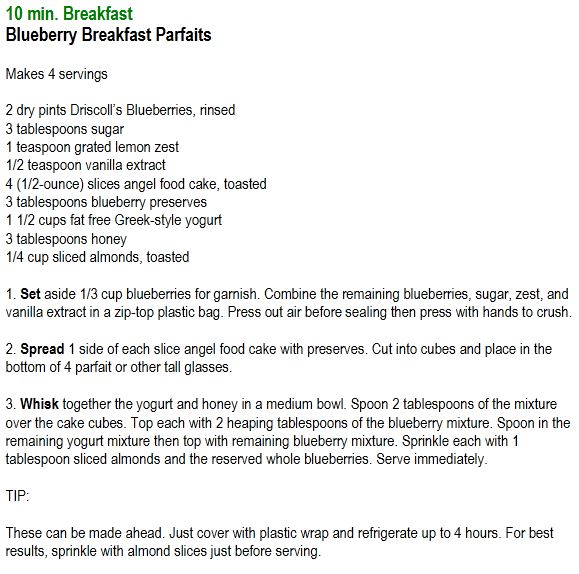 In honor of this special occasion I was invited to appear as a guest on KMOV, Great Day St. Louis. While there, I prepared a Blueberry Breakfast Parfait. This quick, easy and nutritional breakfast can be prepared in 10 minutes. In addition you can also view the Berry Smoothie (takes just 5 minutes) plus Whole Wheat Blueberry Pancakes (takes 15 minutes) I made. All three recipes can be prepped ahead, so if time is an issue in the morning, you’ll have no excuse now.
