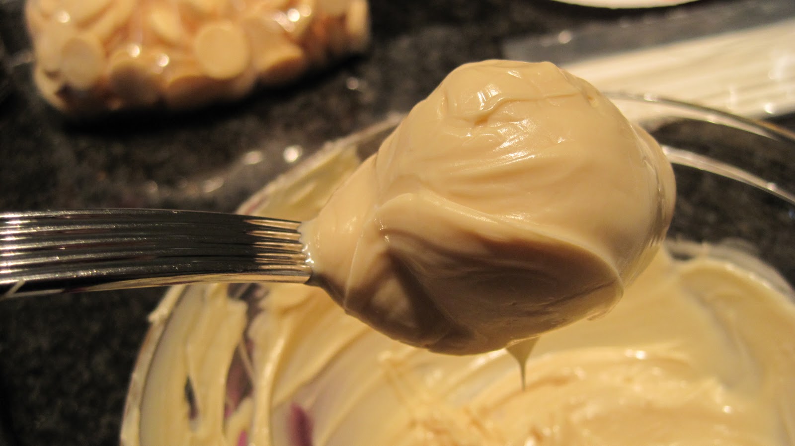 Confectionery Coating is used as a dip for candies. Confectionery, summer coating or candy melts are a blend of sugar, milk powder, hardened vegetable fat and various flavorings. They come in a variety of pastel colors. Some have lowfat cocoa powder added, but they do not contain cocoa butter. They taste delicious, but don’t require the careful melting procedures of chocolate which makes cooking with them stressless! The Wilton Company has some handy tips when working with Confectionery Coating that you might find helpful.